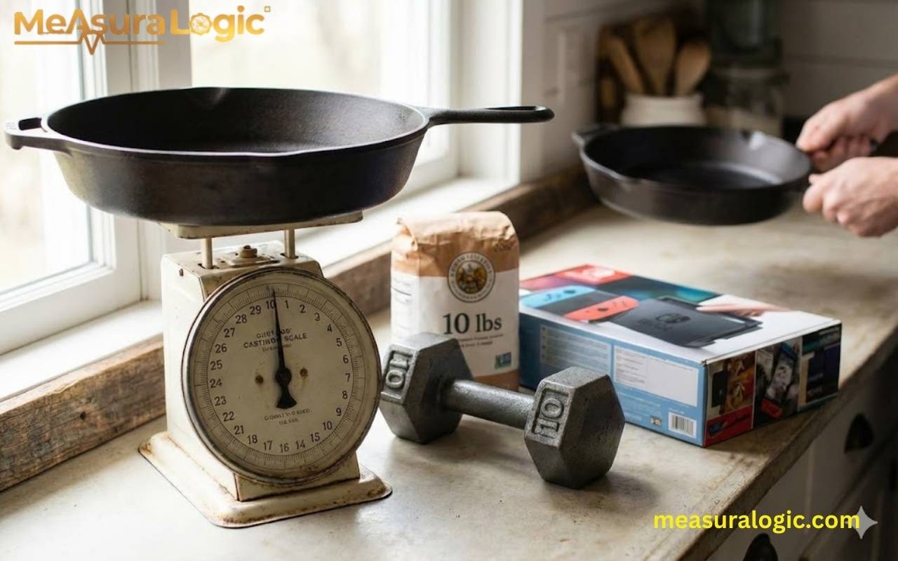 Cast iron also teaches control and posture. Unlike soft or shifting objects, the load stays firm, requiring steady support. Holding it gives a memorable sense of ten pounds. It is a functional and intuitive benchmark.